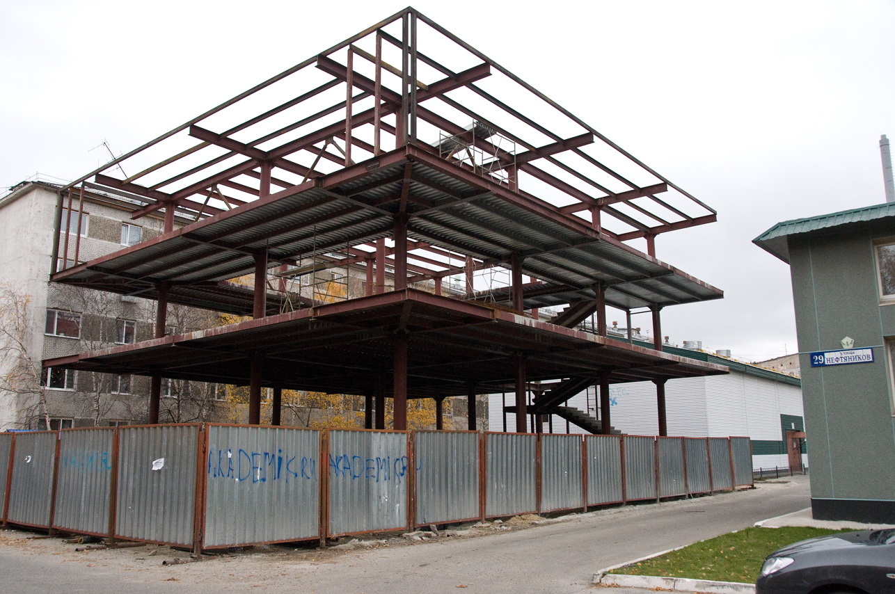 Некогда небольшой и даже вполне востребованный в микрорайоне продуктовый магазинчик площадью 20 кв.м сегодня превращается в трехэтажное строение неясного пока назначения, но значительных масштабов – порядка 800-900 кв. м.