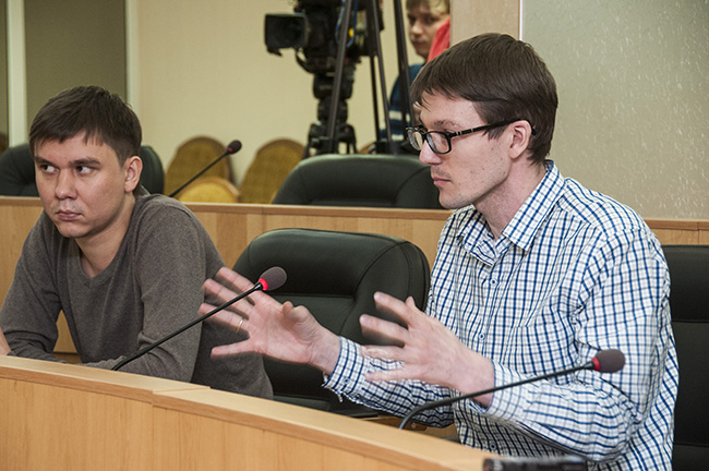 На вопросы представителей средств массовой информации ответили Председатель Думы Сергей Бондаренко и депутат Игорь Бруслиновский.
