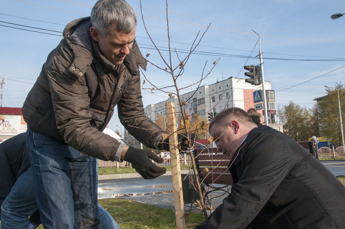 60 молодых декоративных яблонь высадили депутаты и сотрудники аппарата Думы города в сквере «Строитель». На посадку деревьев пришли целыми семьями. Если саженцы сибирской яблони стойко перенесут зиму, то, возможно, уже следующей весной станут настоящим украшением микрорайона.