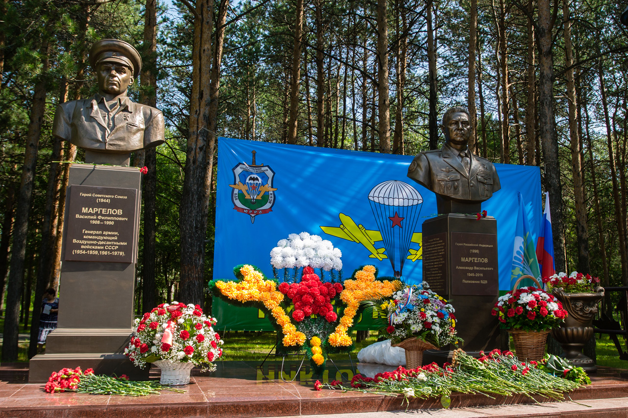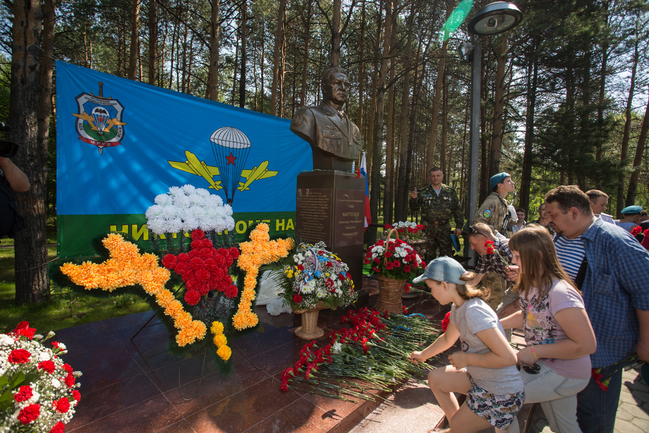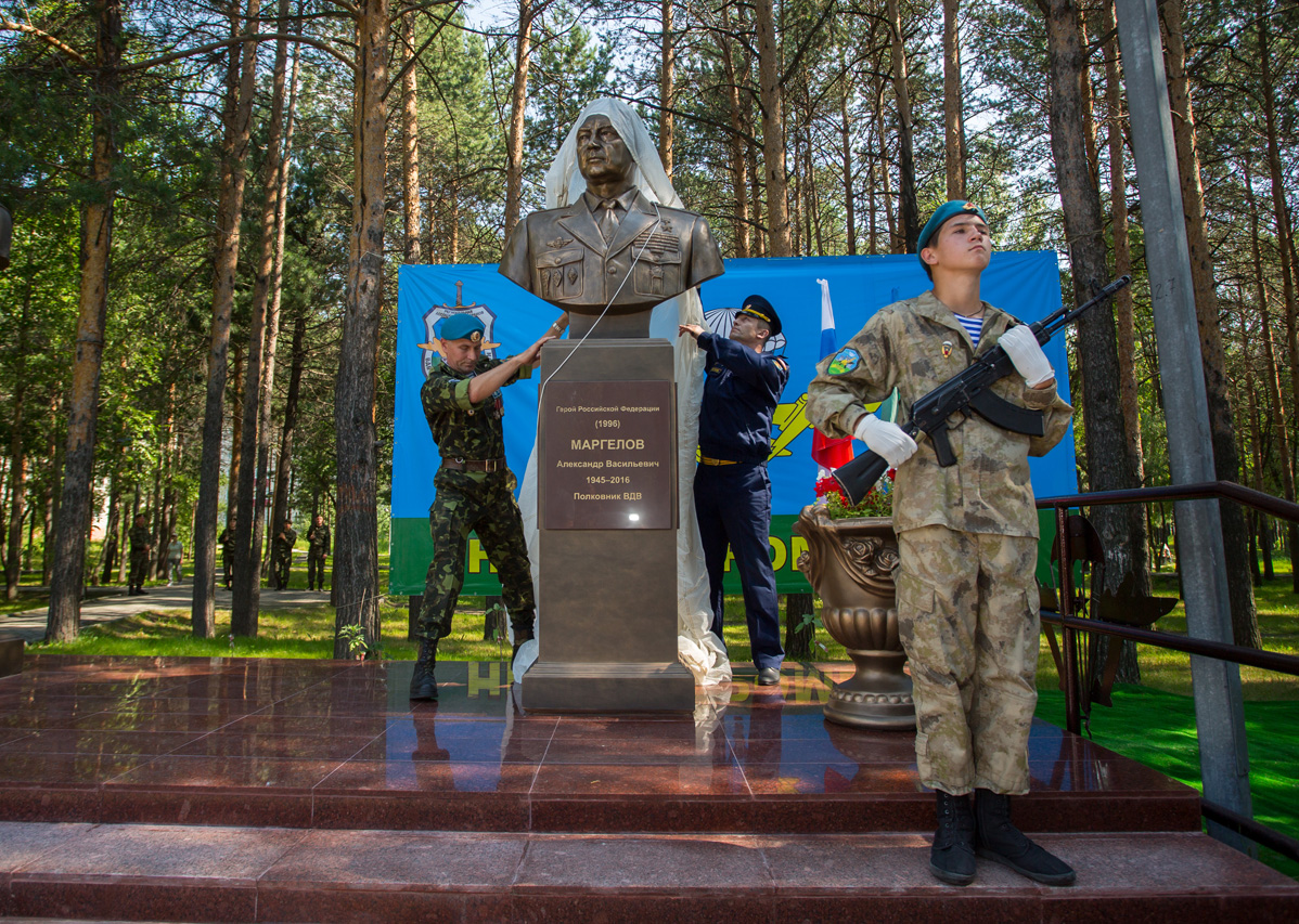22 июля в Сургуте состоялось открытие памятника-бюста Герою России полковнику Александру Маргелову. Год назад, 19 июля Александра Васильевича не стало и именно к этой скорбной годовщине приурочили торжество, как дань памяти человеку, который является примером стойкости, мужества и чести для всех ветеранов ВДВ и всех тех, кто сегодня служит в военно-десантных войсках.