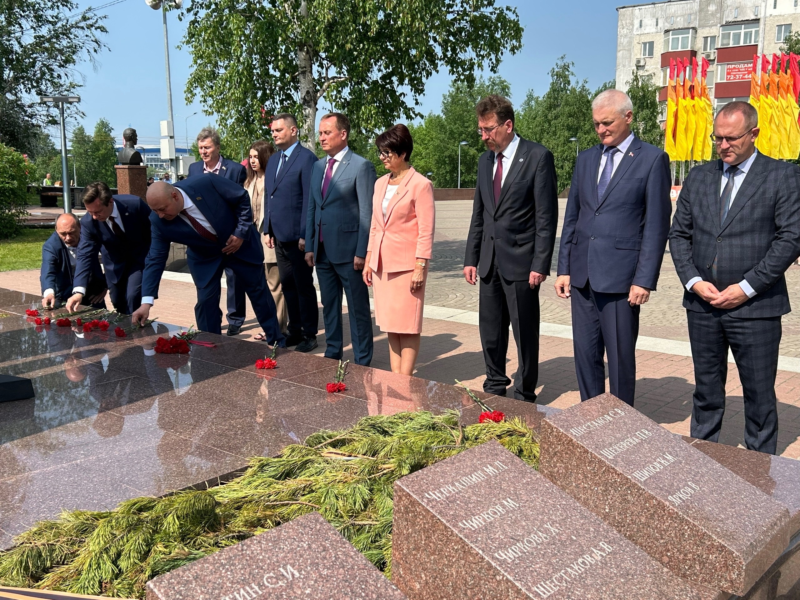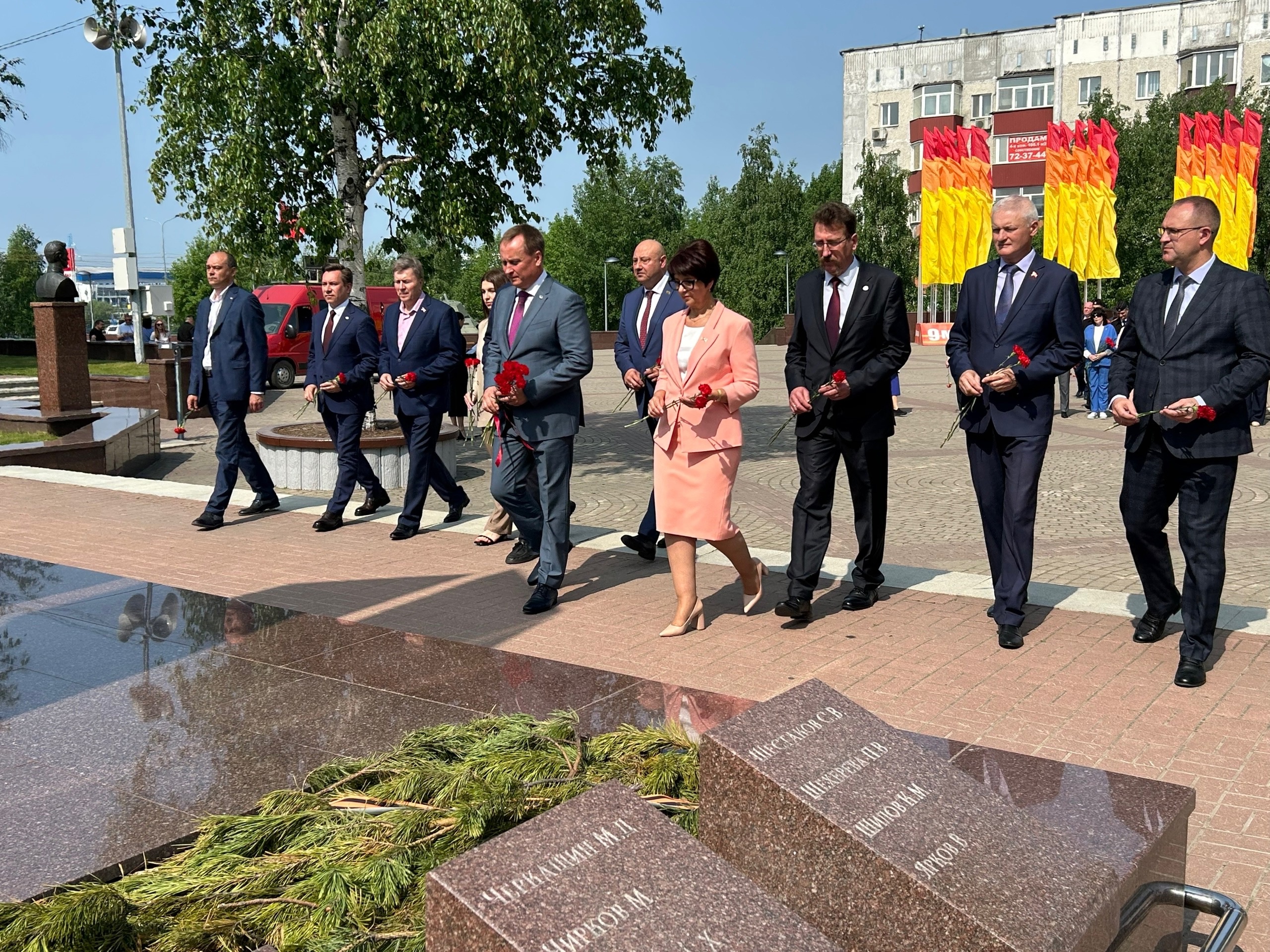 Первое мероприятие, с которого началась их рабочая поездка - возложение цветов к Вечному огню, где собрались представители администрации, молодежной палаты, учащиеся лицея им. Хисматуллина, движения «Юнармия», военно-патриотического клуба «Север» и общественных организаций города.