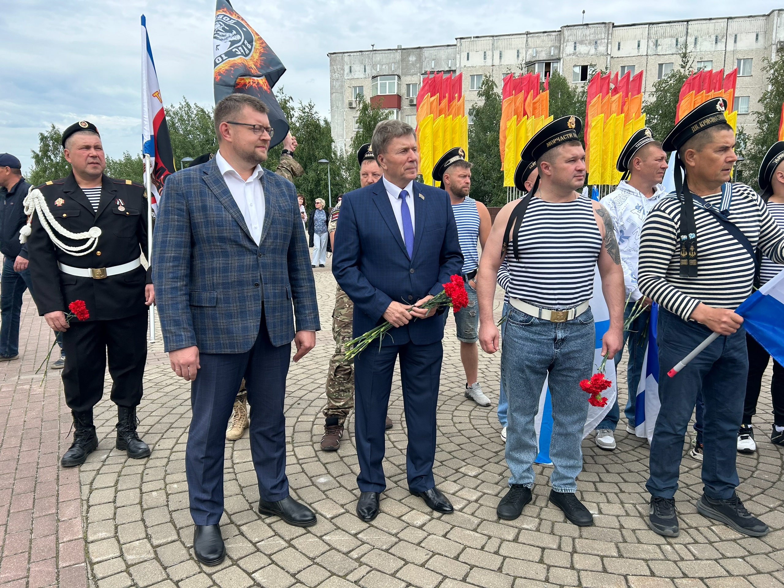 Сегодня у Мемориала Славы состоялось мероприятие, посвященное Дню Военно-Морского Флота. На стелах мемориала начертаны имена героев, в числе которых военные моряки.