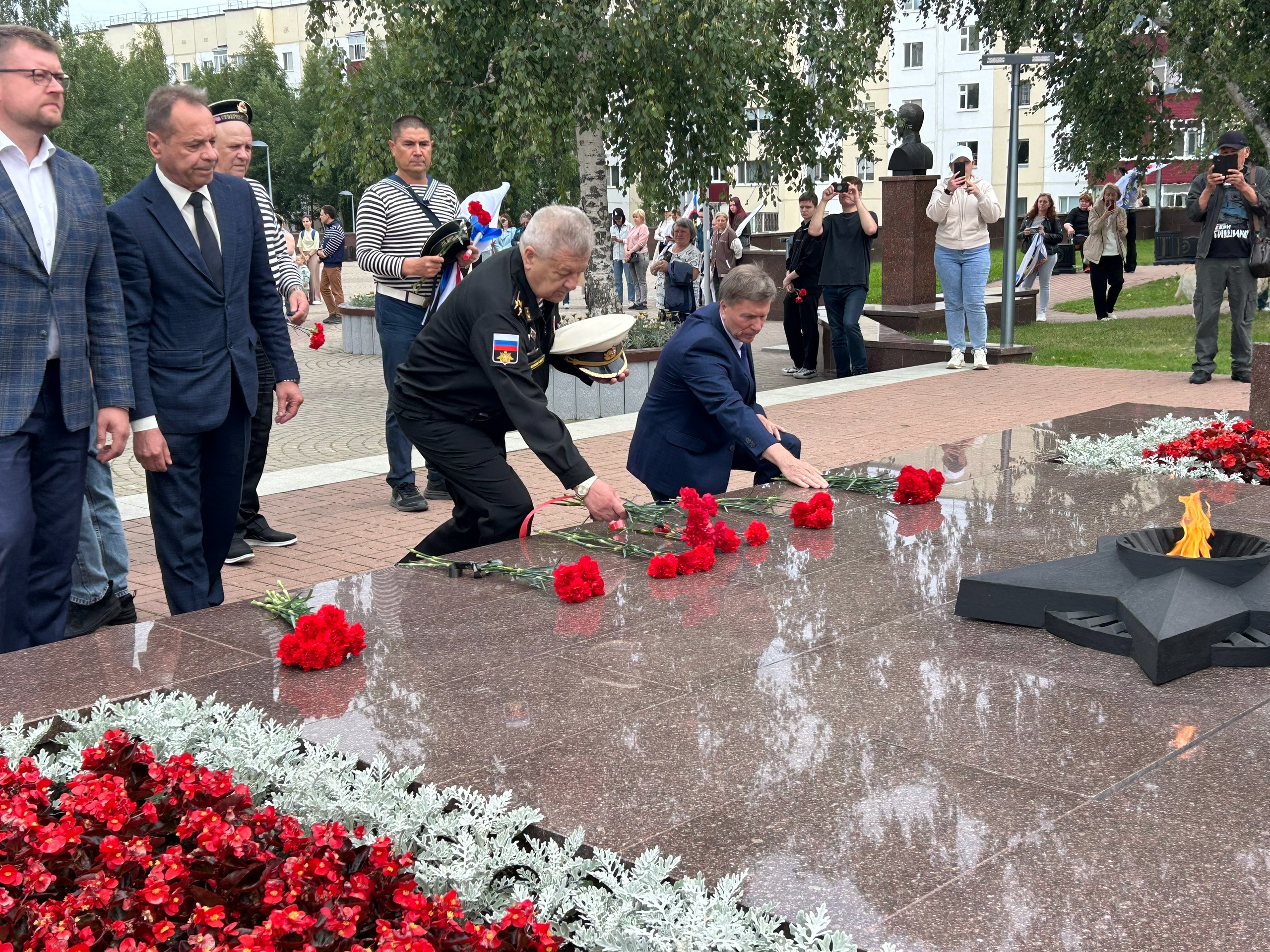 Участники мероприятия возложили цветы к памятнику и произнесли торжественные речи. Думу Сургута представлял депутат Виктор Рябчиков, который подчеркнул, что моряки России всегда доблестно сражались за Родину и продолжают самоотверженно защищать страну.