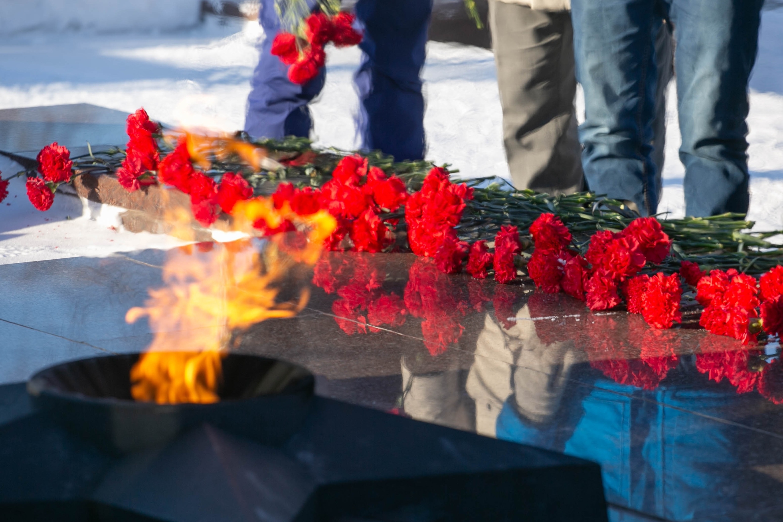 Сегодня у Мемориала Славы состоялась торжественная церемония возложения цветов и венков к Вечному огню, приуроченная ко Дню защитника Отечества.